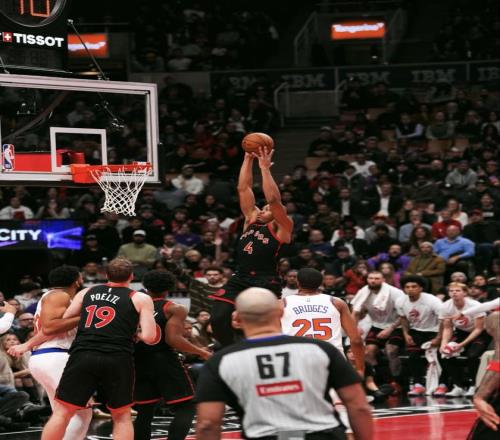尼克斯队的布伦森上半场得到26分,唐斯得到10分和9个篮板,阿奴诺比得到10分和4个篮板;猛龙队的英格拉姆得到19分和4个篮板,谢德得到10分。